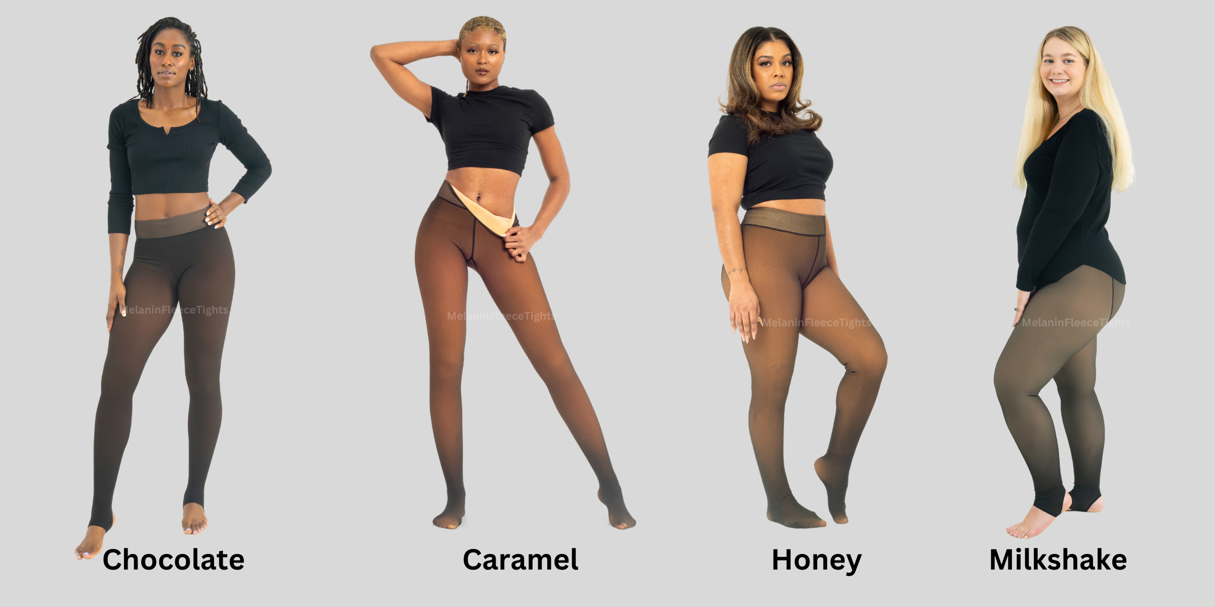 Do you love wearing dresses and skirts all year long but dread the winter chill that forces you to hide your legs beneath dull, uninspiring tights? Say goodbye to sacrificing style for warmth because MelaninFleeceTights™ are here to revolutionize your cold weather wardrobe. These innovative fleece lined tights offer the illusion of sheer black stockings while providing unparalleled warmth, comfort, and style.